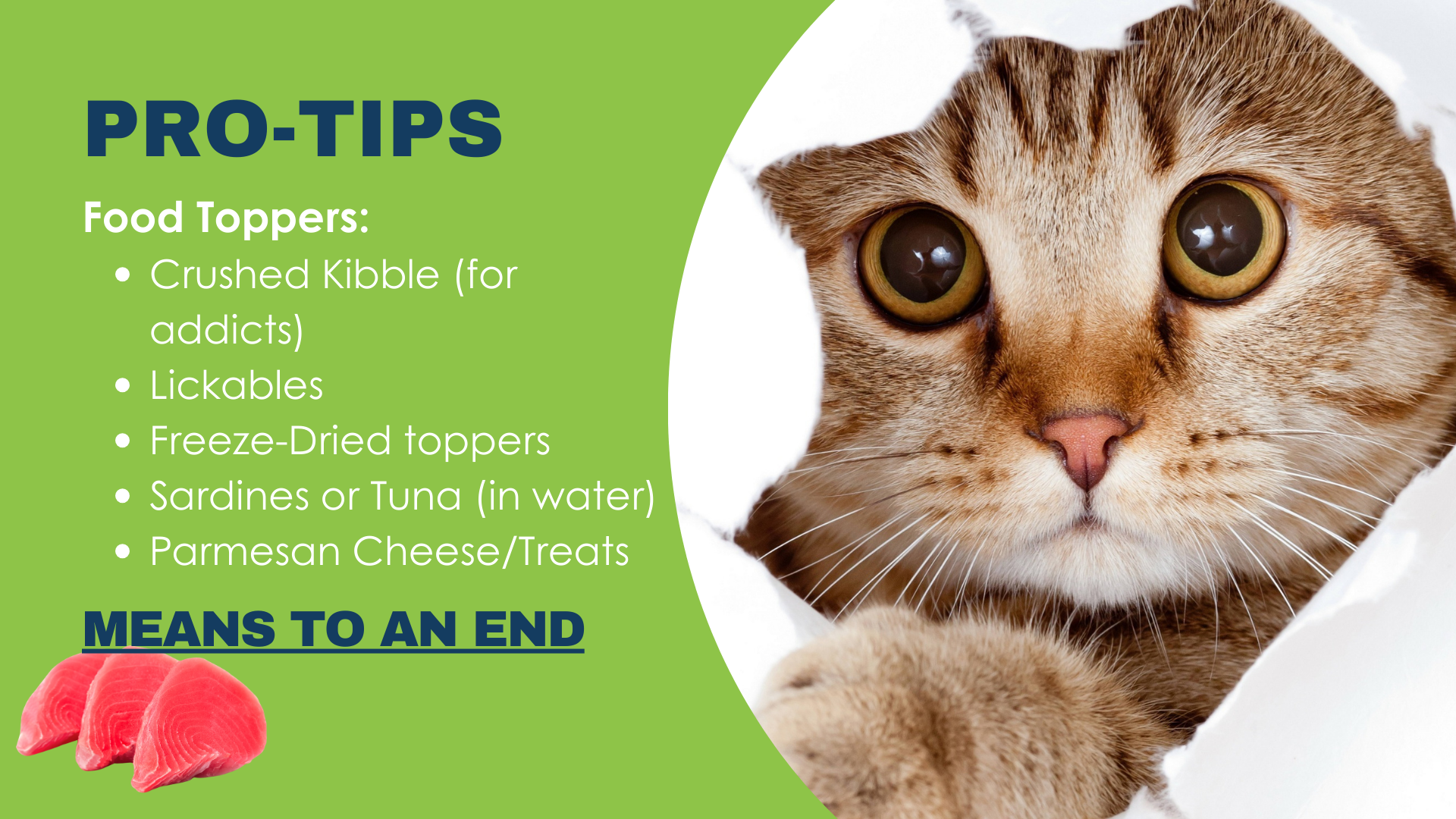 Try upgrading and diversifying the types of wet food you feed. Don’t just feed your cats a fish or chicken based wet food. Mix in some more novel proteins. Try different brands. Starting this from the beginning will help greatly in the next steps.